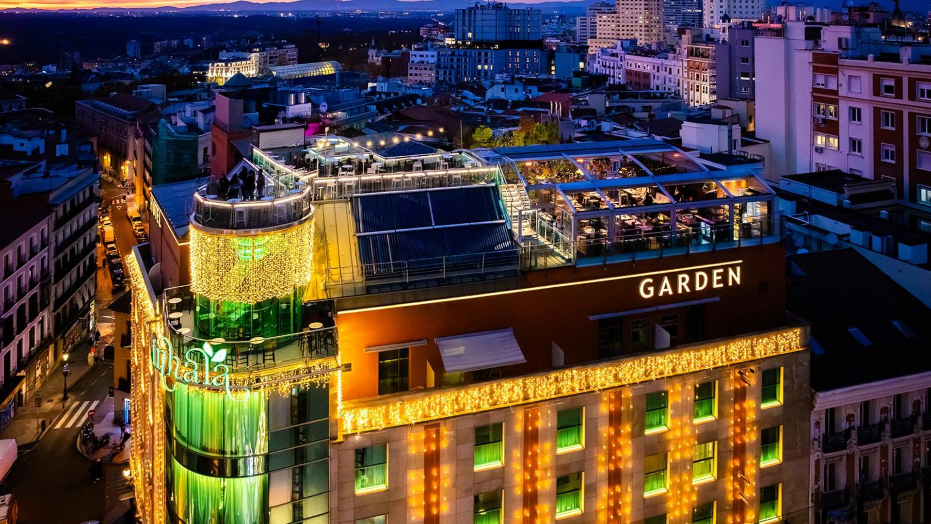 The terrace is located on the rooftop of the seventh floor of the Inhala Hotel Garden, next to Gran Vía, where you can enjoy 360º views every day of the year.