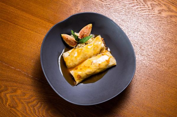 Delicious and exclusive crepes stuffed with duck and mushrooms